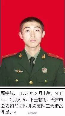 天津滨海新区危化品爆炸发生后,当地46个消防中队的143辆消防车1000余名官兵赶赴现场全力处置。6名已确认身份的牺牲消防战士,请记住他们的名字——